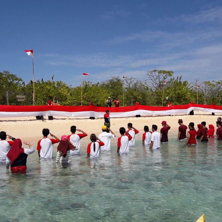 Pengibaran bendera merah putih sepanjang 72 meter di Pulau Tabuhan oleh PC IPNU IPPNU Banyuwangi beberapa waktu lalu (17/8). (Foto: Cholid)