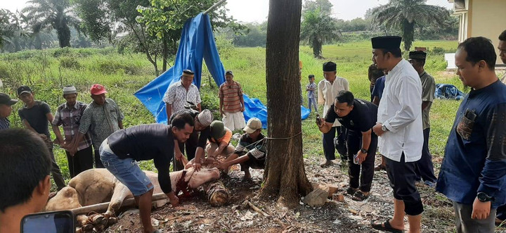 Penyembelihan hewan kurban dari PT Angkasa Pura II, Bandara Radin Inten II Lampung, telah digelar pada Kamis (29/6) berlokasi di desa Branti, Lampung Selatan.
