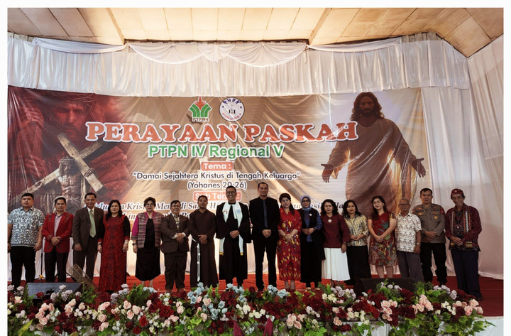 Hi!Pontianak - Persekutuan Hari Besar Kristen (PHBK) PT Perkebunan Nusantara IV (PTPN IV) Regional 5 menggelar perayaan Paskah yang berlangsung meriah pada Sabtu, 26 April 2025, di Wisma Jambu Mawar Kebun Parindu.