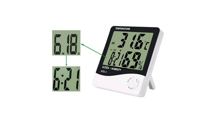 Selain menampilkan suhu ruangan, termometer ini juga menunjukkan tingkat kelembapan. Ada dua mode pengukuran suhu, yaitu Celsius dan Fahrenheit. Rentangnya mulai dari -10°C hingga 70°C.