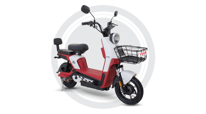 Sepeda listrik Viar A2 menawarkan 3 pilihan warna yaitu warna merah-putih, warna hitam dan warna merah- biru.