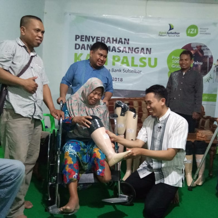 Bank Pembangunan Daerah (BPD) Sulawesi Selatan dan Sulawesi Barat (Sulselbar) bekerjasama dengan Lembaga Amil Zakat Nasional (LAZNAS) Inisiatif Zakat Indonesia (IZI) Sulsel memlalui pemberian bantuan Kaki Palsu kepada Para Penyandang Disabilitas.