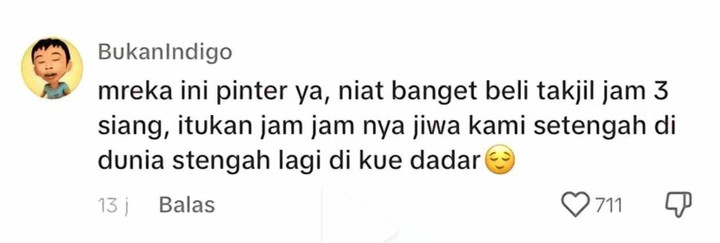 Hal itu menimbulkan perbincangan hangat di kolom komentar, lelucon pun dilontarkan bergantian antara umat muslim dan umat nonis. Ada umat muslim yang mengatakan "Mereka beli takjil jam 2-3 disaat kita lagi koma" lantas dibalas oleh umat nonis, "Aku nonis udah berburu kue kaleng juga, baju lebaran udah beli bulan lalu. Sekarang ikutan berburu takjil."