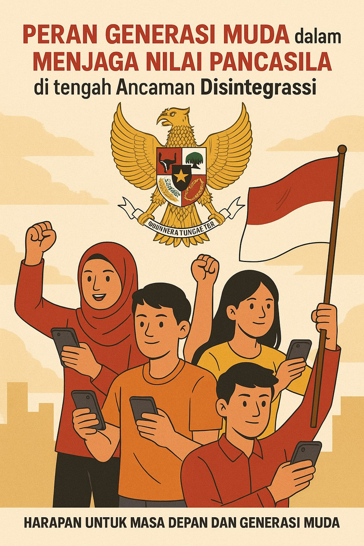Pancasila merupakan dasar negara sekaligus ideologi yang menyatukan keberagaman Indonesia. Dalam situasi globalisasi dan derasnya arus informasi, nilai-nilai Pancasila menghadapi tantangan serius, terutama dari ancaman disintegrasi bangsa yang muncul melalui konflik sosial, intoleransi, radikalisme, serta degradasi moral. Di tengah tantangan ini, generasi muda memiliki peran strategis sebagai penjaga dan penggerak nilai-nilai Pancasila dalam kehidupan berbangsa dan bernegara.