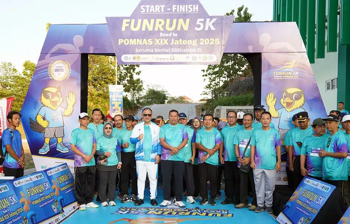 Semarang, 20 September 2025 – Rektor Universitas Diponegoro (UNDIP), Prof. Dr. Suharnomo, S.E., M.Si., hadir mendampingi Direktur Jenderal Pendidikan Tinggi (Dirjen Dikti) Prof. Dr. Khairul Munadi, S.T., M.Eng., dalam acara Fun Run 5K Road to Pekan Olahraga Mahasiswa Nasional (POMNAS) XIX 2025, yang dilaksanakan pada Sabtu, 20 September 2025, di Universitas Muhammadiyah Semarang (UNIMUS). Acara ini merupakan bagian dari rangkaian kegiatan menuju POMNAS XIX yang diselenggarakan di Jawa Tengah pada tahun 2025.