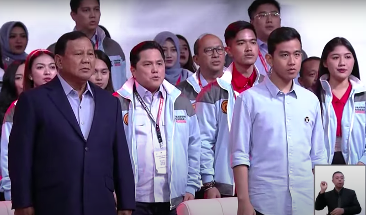 Untuk pertama kalinya Menteri BUMN Erick Thohir hadir di gelaran debat Capres-Cawapres ke-4 yang digelar KPU pada Minggu (21/1). Erick Thohir terlihat duduk di belakang paslon 02, Prabowo Subianto-Gibran Rakabuming Raka.