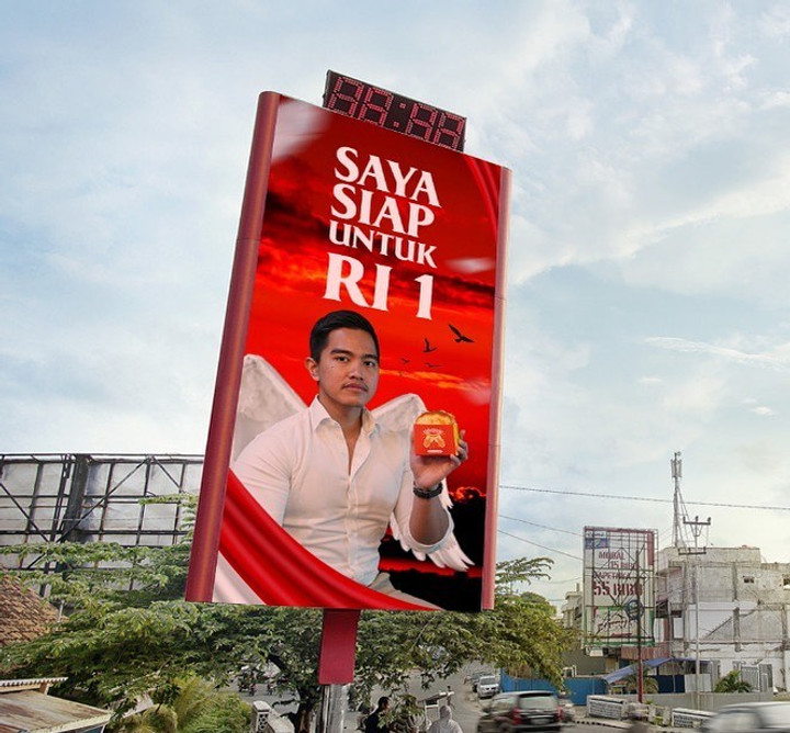 "Baliho di mana-mana untuk PT Roti Indonesia Satu alias RI 1 alias @letstoast.id," tulis Kaesang di akun instagramnya, Kamis (20/8).