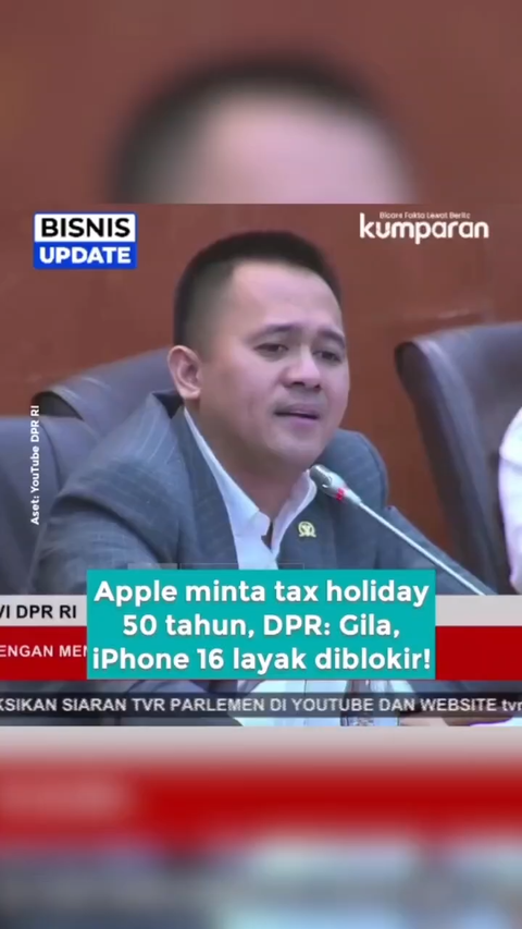 Anggota Komisi VI DPR RI Fraksi PDIP, Mufti Anam, geram dengan Apple yang meminta tax holiday atau pembebasan pajak korporasi selama 50 tahun jika ingin berinvestasi di Indonesia.