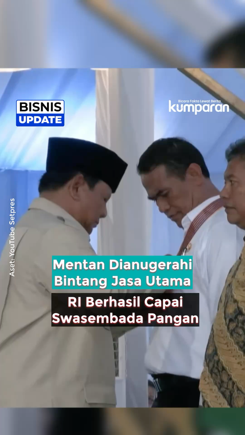 Presiden Prabowo Subianto menganugerahi Bintang Jasa Utama kepada Menteri Pertanian (Mentan) Andi Amran Sulaiman, karena Indonesia berhasil mencapai swasembada pangan.