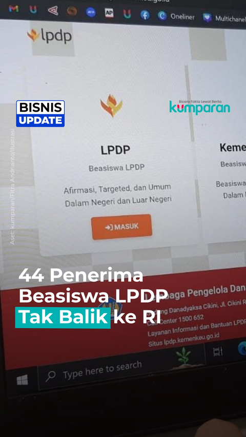 Direktur Utama Lembaga Pengelola Dana Pendidikan (LPDP) Sudarto mencatat saat ini ada 44 penerima beasiswa LPDP mangkir atau tidak balik ke Tanah Air.