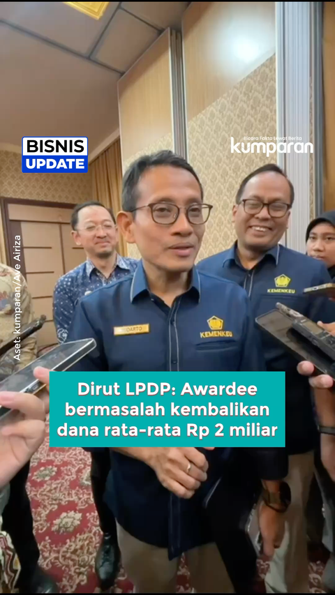 Direktur Utama Lembaga Pengelola Dana Pendidikan (LPDP) Sudarto mengungkapkan, rata-rata dana yang dikembalikan penerima beasiswa yang mangkir mencapai sekitar Rp 2 miliar per orang untuk jenjang doktoral (S3). Sementara untuk program magister (S2), nilainya di bawah Rp 1 miliar.