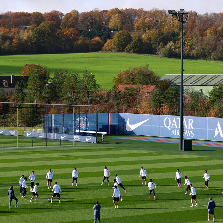 Pemain Paris Saint Germain (PSG) melakukan latihan di Kampus Paris St Germain, Poissy, Prancis, Senin (3/11) waktu setempat.