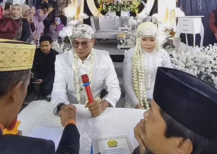 "Saya terima nikah dan kawinnya Ayu Kartika Agustina binti A Bahrudin dengan mas kawin 100 gram emas dibayar tunai," ujar Andika Mahesa dalam satu helaan napas.