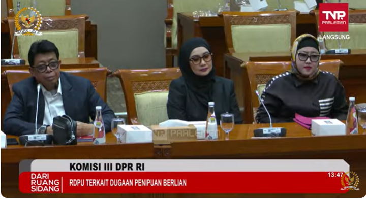 Komisi III DPR RI melakukan rapat dengar pendapat dengan penyanyi Reza Artamevia dan rekannya, Ratna Dewi, pada Kamis (17/12).