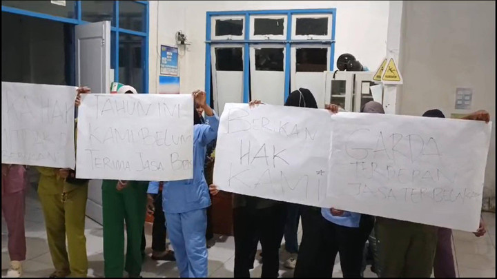 "Kami dari pegawai rumah sakit RSUD Dokter Salim Alkatiri, ingin pihak-pihak terkait dengar kami punya masalah hari ini, mendengar kami punya keluh kesah, dalam hal ini kami punya jasa BPJS atau jasa medik yang harusnya kami dapat, tapi kenapa sampai kami lakukan gerakan seperti ini karena tahun 2024 ini hak kami belum dapat," kata dr. Lia Laitupa, salah satu nakes di RSUD tersebut.