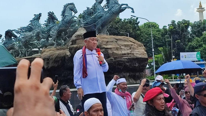 Din mengaku sudah memantau keterangan beberapa hakim terkait gugatan sengketa pilpres melalui media sebelum datang ke Patung Kuda.
