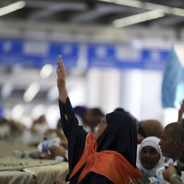 Jemaah haji mulai melaksanakan lempar jumrah aqabah di Jamarat, Makkah, Arab Saudi, Jumat (6/6) waktu setempat.kumparanNEWS