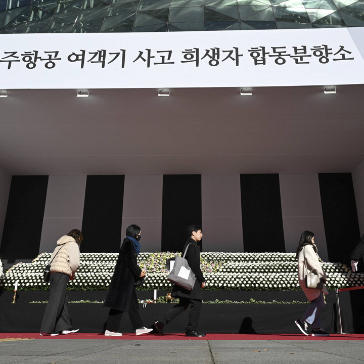 Sejumlah pelayat memberikan penghormatan kepada korban kecelakaan Pesawat Jeju Air di Seoul, Korea Selatan, Rabu (31/12).kumparanNEWS