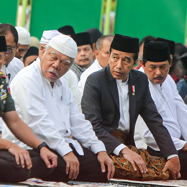 Presiden Jokowi melaksanakan Salat Idul Adha 1445 H di Simpang Lima, Semarang, Jawa Tengah, Senin (17/6).kumparanNEWS