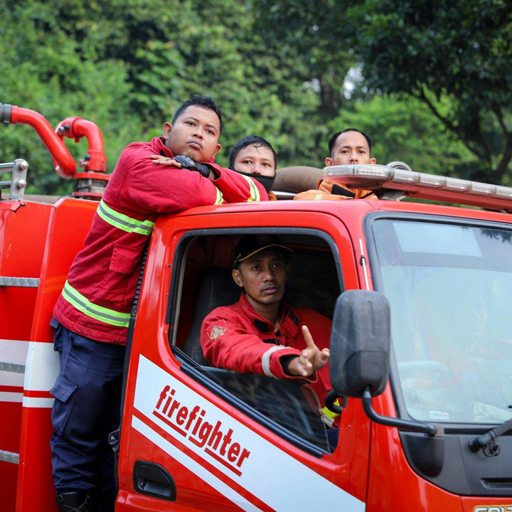 Petugas pemadam kebakaran gabungan usai memadamkan api di Gudang amunisi Daerah (Gudmurah) Jaya/Bekasi, Ciangsana, Kabupaten Bogor, Jawa Barat.kumparanNEWS