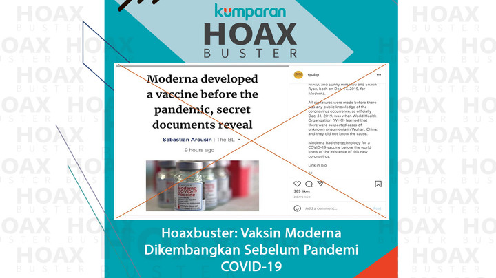 Hoaxbuster: Hoaks Vaksin COVID-19 Moderna Diproduksi Sejak Sebelum Pandemi
