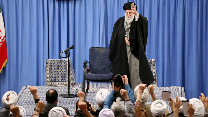 Khamenei tampak berpakaian serba hitam. Ia disambut oleh para pengunjung yang mengatakan 'Darah di nadi kami, untuk pemimpin kami!'.