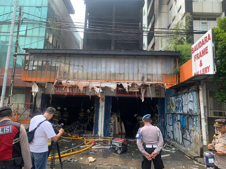 Petugas pemadam kebakaran [Damkar] mengungkap kondisi 7 korban tewas dalam kebakaran hebat toko pigura di Jalan Raya Mampang Prapatan, Kamis (18/4) malam.