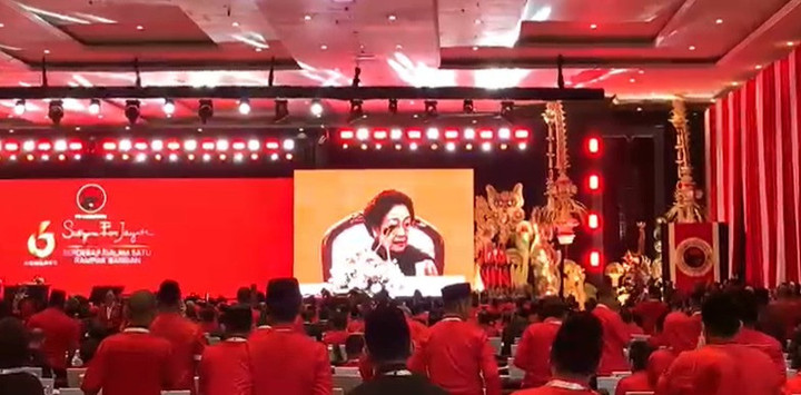"Ternyata yang saya katakan Satyam Eva Jayate (artinya kebenaran pasti akan menang), ternyata kebenaran itu, Alhamdulilah, Tuhan memberikan apa yang telah diinginkan oleh beliau. Kita sekarang, saya tadinya berdoa, tapi saya tidak terlalu berharap bahwa yang namanya Pak Hasto berada kembali di sini," ujar Mega yang kembali menangis diiringi riuh tepuk tangan peserta kongres.