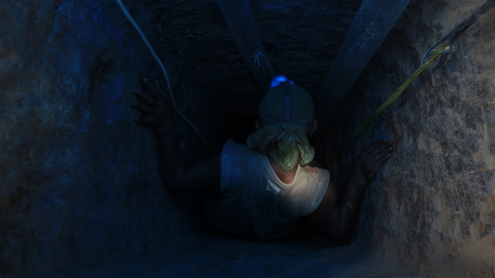 Di lubang itu, Haris menunjukkan bagaimana dia, Hussein, dan kawan-kawan mereka lainnya turun ke dalam lubang. Mereka menapaki kayu demi kayu yang terpasang di sekeliling lubang.