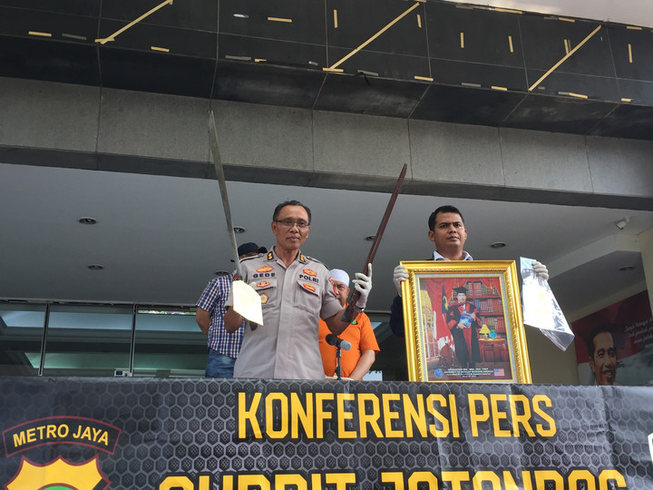 Selain itu, polisi juga menemukan pelat nopol B 1442 KJM dan senjata tajam berupa parang dari dalam mobil.