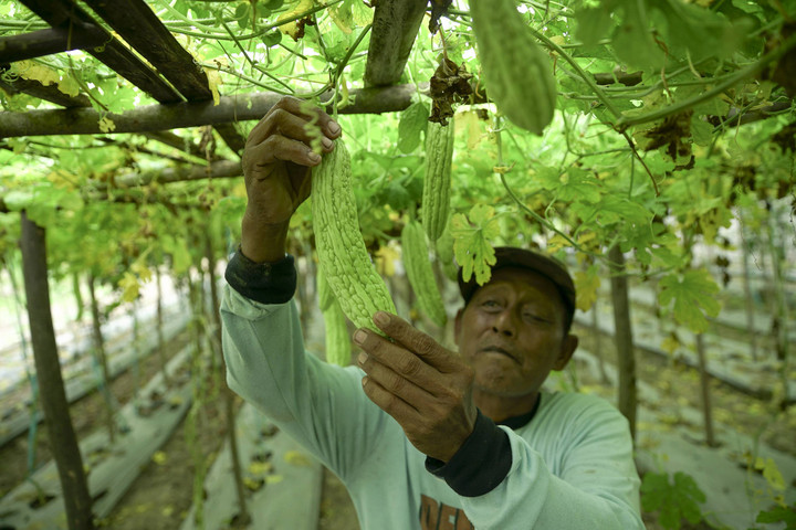 Saat kumparan berkunjung, kebun penuh dengan tanaman pare yang berbuah lebat. Di sisi lainnya, ada deretan tanaman terong yang masih muda. Sungep, salah satu anggota kelompok tani tersebut menjelaskan, pupuk yang digunakan adalah pupuk kandang.