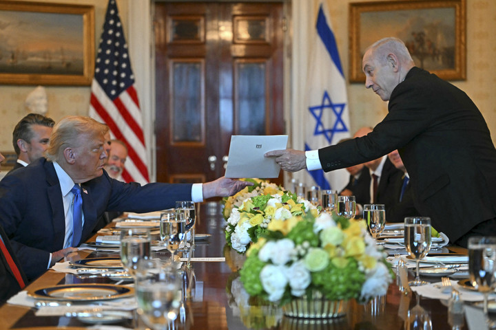 Perdana Menteri Israel Benjamin Netanyahu dan Presiden Amerika Serikat Donald Trump bertemu di Gedung Putih, Senin (8/7). Pertemuan dua pemimpin negara itu ternyata untuk membahas rencana pemindahan paksa ribuan warga Palestina dari Gaza.