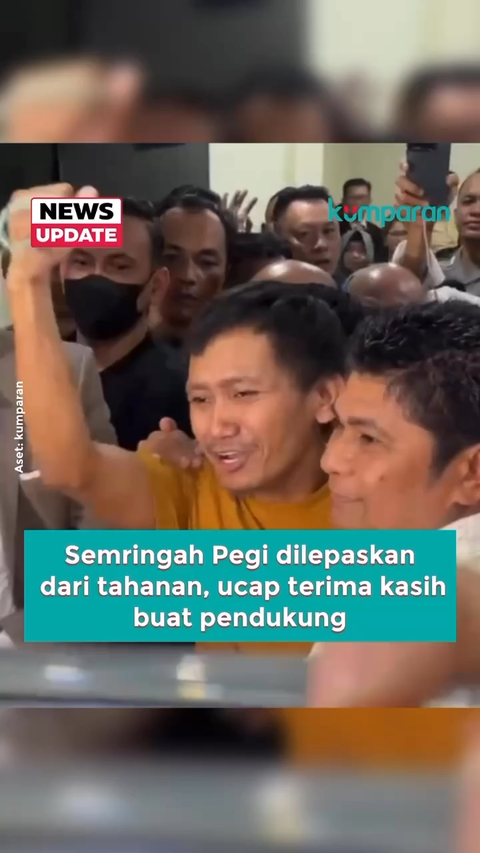 Ia pun keluar dari penjara malam ini pukul 21.29 WIB. Pegi mengenakan pakaian berwarna cokelat.