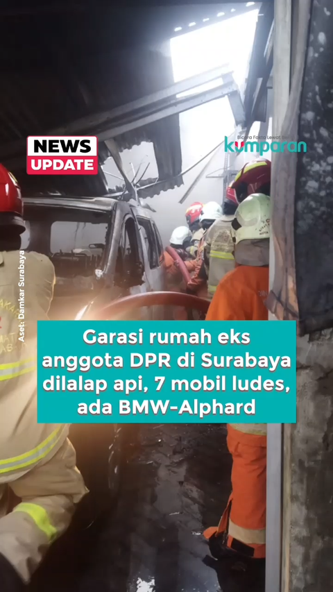 Garasi rumah eks anggota DPR, Azam Azman, di Surabaya terbakar, 7 mobil termasuk BMW dan Alphard hangus dilalap api.