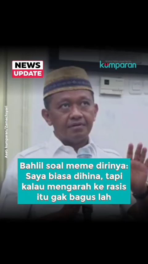 Ketua Umum Partai Golkar sekaligus Menteri ESDM, Bahlil Lahadalia, menanggapi santai sejumlah meme tentang dirinya yang beredar di media sosial. Ia mengatakan sudah biasa dihina sejak kecil, namun menegaskan tidak suka jika meme tersebut mengandung unsur rasis.