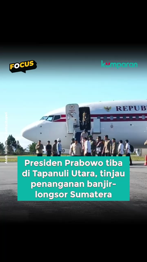 Presiden Prabowo Subianto tiba di Bandara Raja Sisingamangaraja XII, Tapanuli Utara, Senin (1/12), sekitar pukul 08.00 WIB untuk meninjau wilayah terdampak banjir di Pulau Sumatera. Ia tampak mengenakan setelan safari krem saat turun dari pesawat kepresidenan PK-GRD dan langsung berganti menuju helikopter yang membawanya ke GOR Pengungsian di Tapanuli Tengah.