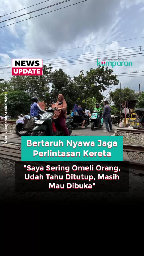 Indra (55) sejak 2020 menjaga palang perlintasan kereta api di kawasan Tebet, Jakarta Selatan, secara swadaya bersama warga sekitar. Ia menyebut pekerjaan ini berisiko tinggi, baik karena kereta yang melaju cepat maupun pengendara yang nekat menerobos palang meski sudah ditutup.