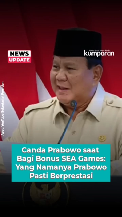 Presiden Prabowo Subianto berkelakar, setiap nama Prabowo pasti menyumbang prestasi. Candaan itu ia sampaikan saat memberikan bonus bagi atlet Indonesia yang meraih medali dalam SEA Games 2025.
