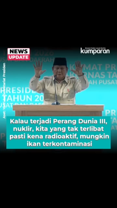 Presiden Prabowo Subianto mengingatkan dampak serius yang dapat terjadi jika Perang Dunia Ketiga meletus, terutama bila melibatkan senjata nuklir. Hal itu ia sampaikan saat memberikan taklimat dalam Rakornas 2026 di Sentul International Convention Center (SICC), Bogor, Senin (2/2).