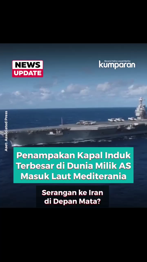 Kapal induk terbesar di dunia milik AS, USS Gerald R. Ford, terpantau memasuki Laut Mediterania usai melintasi Selat Gibraltar sejak Jumat (20/2). Pergerakan ini terjadi di tengah meningkatnya ketegangan AS dan Iran.