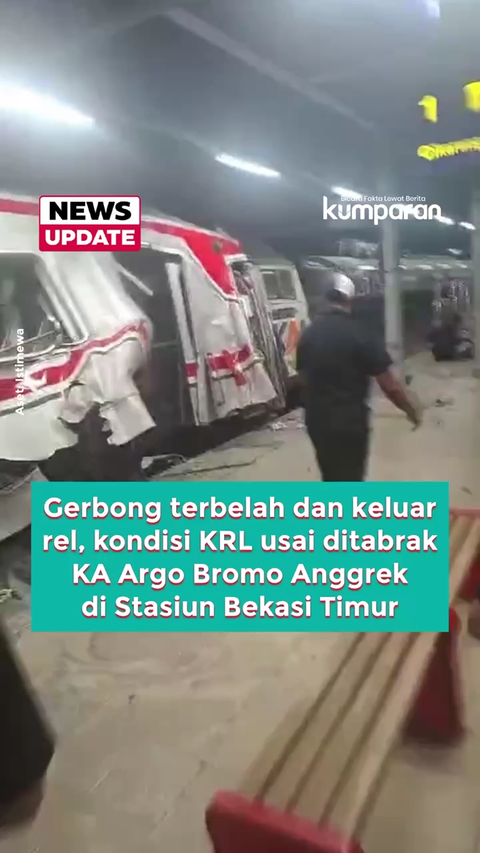 Dalam video yang diterima kumparan, gerbong KRL khusus wanita ringsek parah dan terbelah. KRL juga keluar dari rel. Sejumlah penumpang tampak dievakuasi petugas.