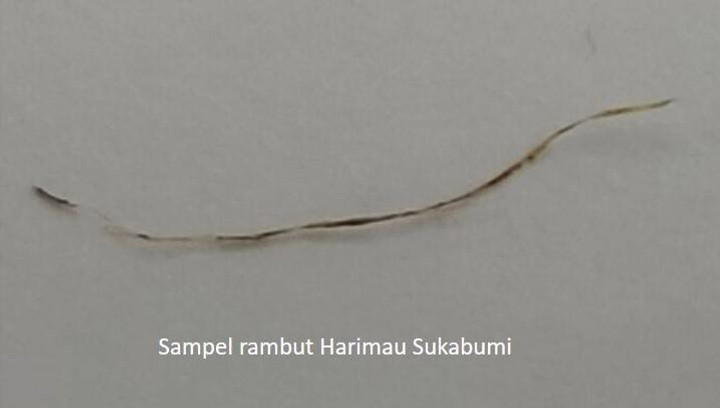 Sehelai rambut harimau ditemukan di pagar pembatas antara kebun rakyat dengan jalan desa Cipeundeuy, Sukabumi Selatan, Jawa Barat. Dari hasil analisis, peneliti Badan Riset dan Inovasi Nasional (BRIN) menduga rambut itu milik spesies punah harimau jawa.