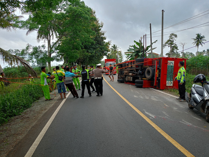 "Berdasarkan keterangan saksi, truk ini melaju dari Sukadana menuju Batanghari Nuban. Saat di lokasi kejadian, muncul kendaraan dari arah berlawanan. Sopir truk berusaha menghindar dengan membanting setir ke kanan, namun truk kehilangan keseimbangan dan terguling," ujar AKP Glend.