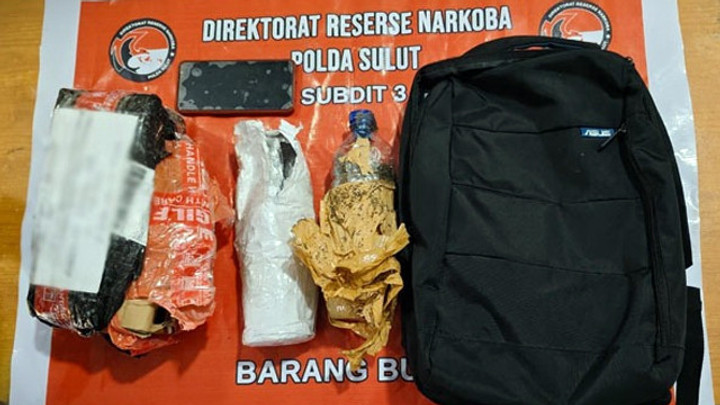 Polisi kemudian mengamankan beberapa barang bukti di antaranya paket kiriman, botol air mineral ukuran 1500 ml berisi narkotika jenis ganja, dan handphone. Pria yang diamankan itu kemudian dibawa ke kantor Ditresnarkoba Polda Sulut untuk dilakukan penyelidikan dan penyidikan lebih lanjut.