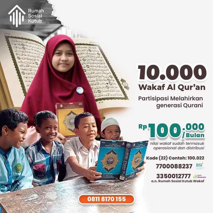 Mari Sukseskan Gerakan 10.000 Wakaf Al Qur'an melahirkan generasi Qur'aniRumah Sosial Kutub