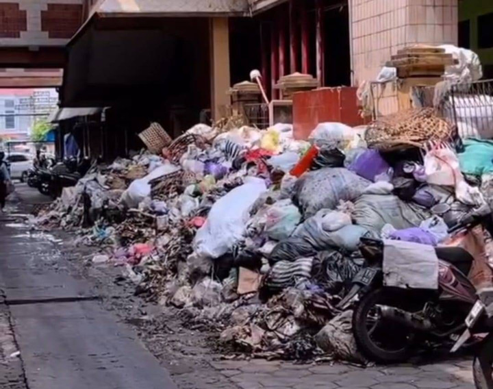 Dalam video yang beredar di media sosial, tumpukan sampah terlihat sampai menutup separuh jalan di Pasar Beringharjo.