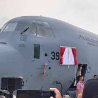 Pecahkan Kendi, Jokowi Serahkan Pesawat Super Hercules A-1339 ke Prabowo