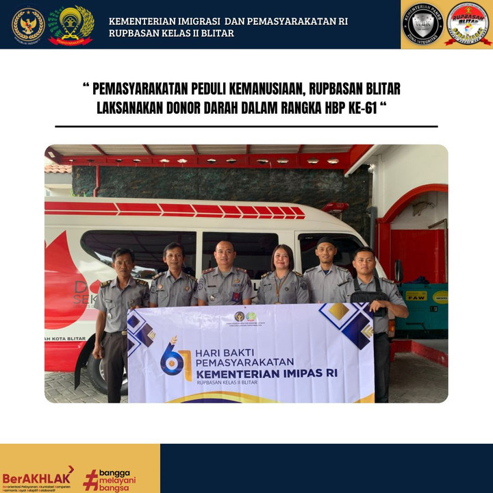 Rupbasan Blitar Kanwil DitjenPas Jawa Timur melaksanakan Donor Darah dalam rangka HBP Ke-61Rupbasan Blitar