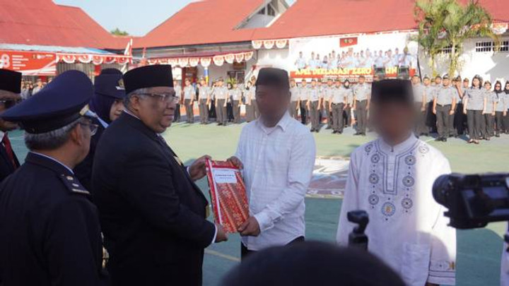 Penyerahan SK Remisi Umum yang dilakukan secara simbolis oleh Gubernur Sulawesi Tenggara Ali Mazi, S.H., kepada Warga Binaan Pemasyarakatan (WBP) Rutan Kelas IIA Kendari di lapangan Apel Lapas Kelas IRutan Kendari