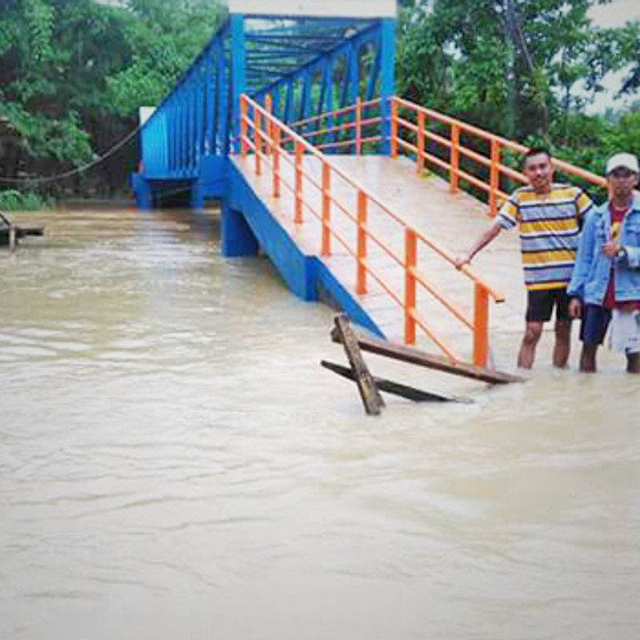 "Banjir luapan sungai di jembatan Ki Sohir mulai terjadi sekitar pukul 10.00 Wib tadi, "ujar Ronal Legi, warga Kecamatan Ciemas, Senin (27/11/2017).